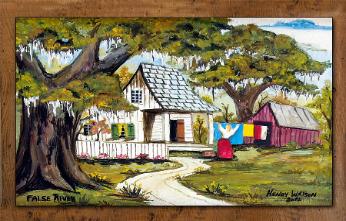 speaks from the reclaimed cypress wood found in slave homes and barns, to the 3-D carving of the